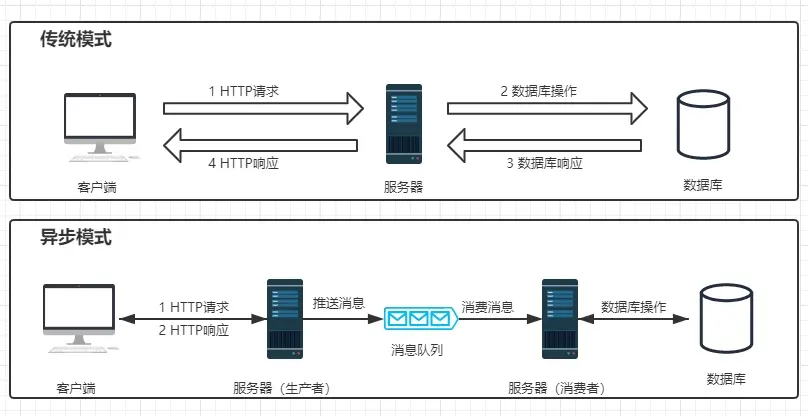 - 异步:常见的B/S架构下,客户端向服务器发送请求,但是服务器处理这个消息需要花费的时间很长的时间,如果客户端一直等待服务器处理完消息,会造成客户端的系统资源浪费;而使用消息队列后,服务器直接将消息推送到消息队列中,由专门的处理消息程序处理消息,这样客户端就不必花费大量时间等待服务器的响应了;