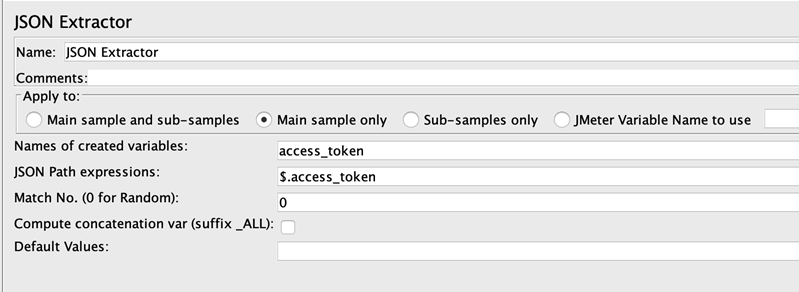 需要使用json path来匹配需要提取的变量值。由于篇幅有限,我就不讲解json path的使用方法了,请大家自行搜索。
