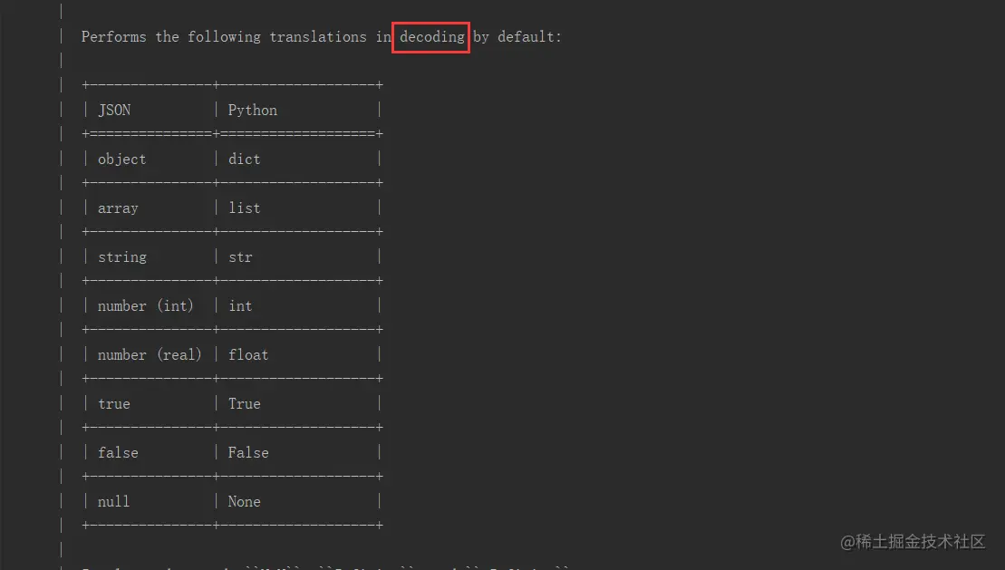 7、从json模块的对应源码中可以查看到, json 数据转化成 python 可识别的数据,对应的表关系如下