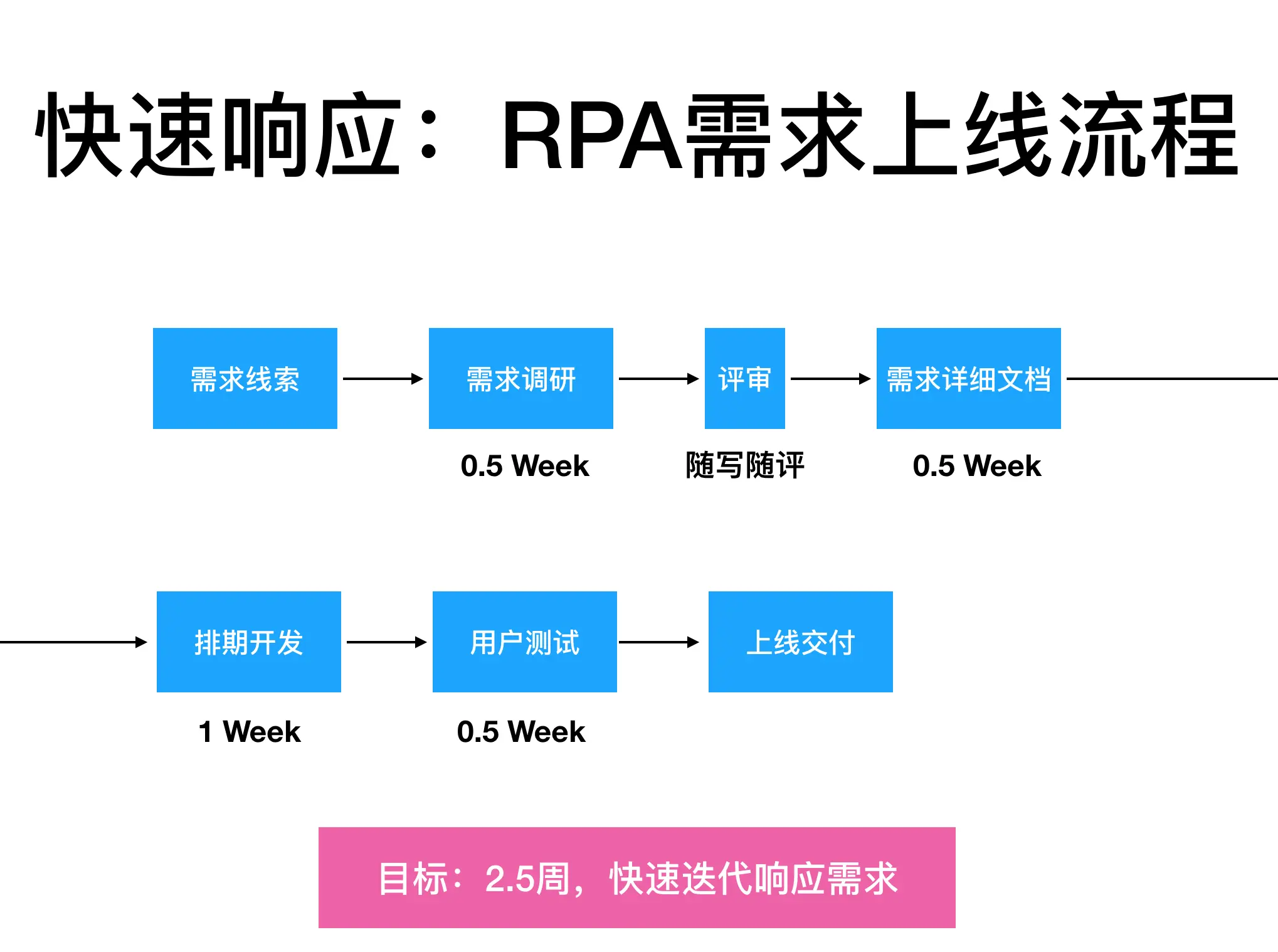 RPA 中的 P 就是 Process ,机器人流程自动化。在沟通过程中,会有很多歧义。别人会觉得,流程是流程团队的事情,梳理流程这个不适用互联网公司,我们业务变得太快,流程是滞后的,是低效的。
