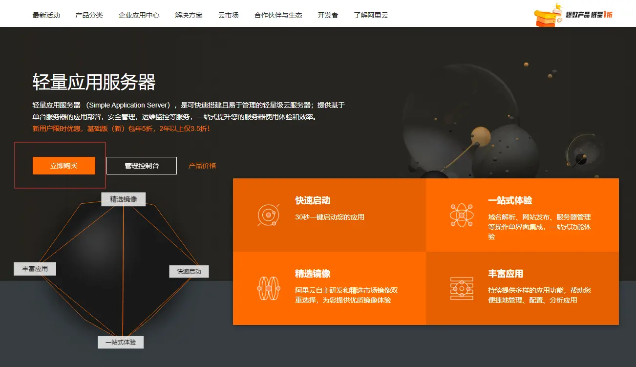 - 进入轻量应用服务器管理控制台,点击立即设置