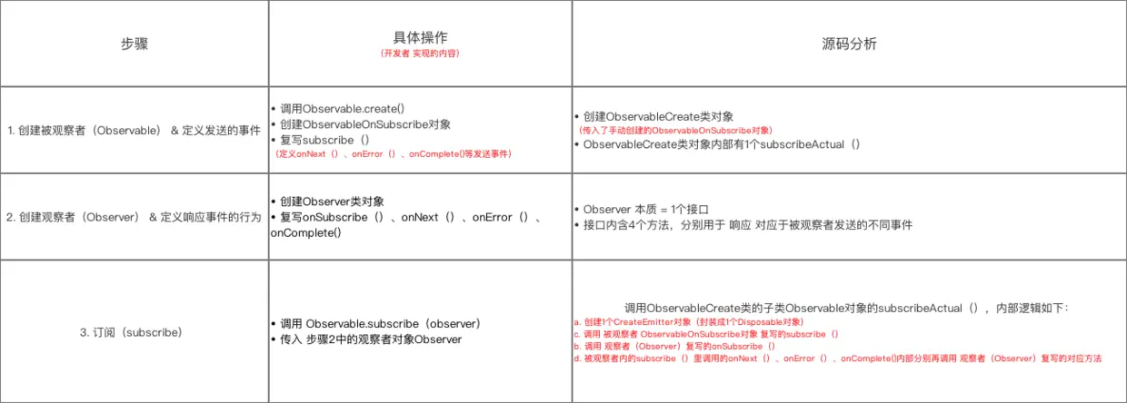 但基本原理相同:都是封装传入的观察者(Observer)对象,调用被观察者(Observable)重写的subscribe()方法