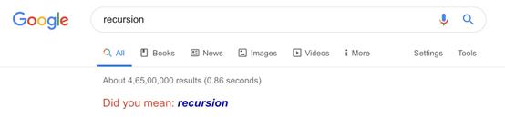 递归是将定义的函数应用到自己的定义中。简而言之,递归是函数的自身调用。当你用谷歌搜索递归时,会遇到点小插曲。