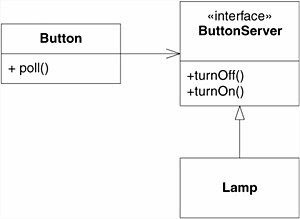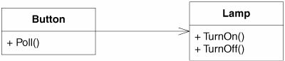 上图的关系中,当Button直接调用灯的开和关时,Button就依赖于灯了。其代码完全是过程式编程: