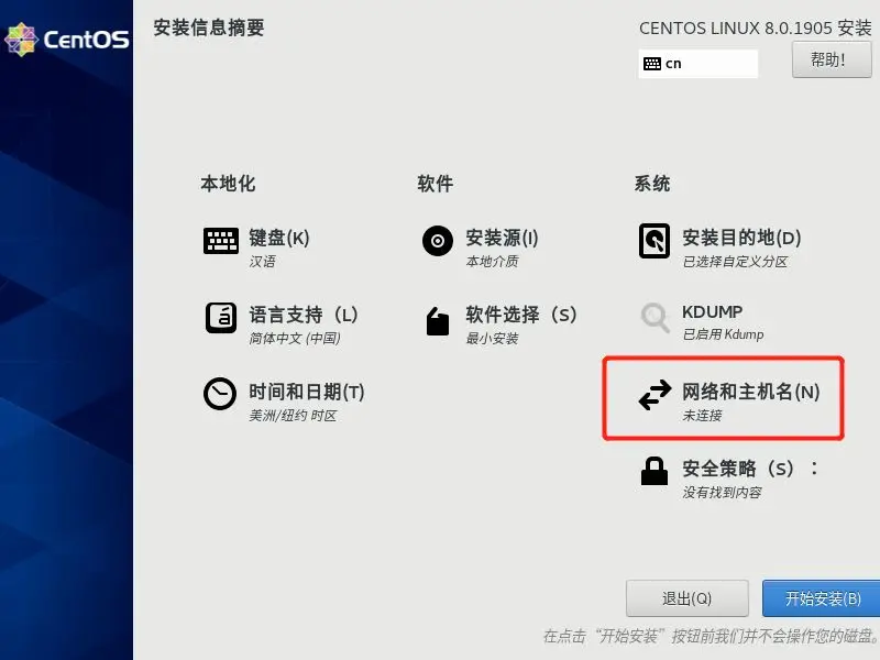 首先第一步这里要选择自定义安装,典型安装暂时不支持centos8