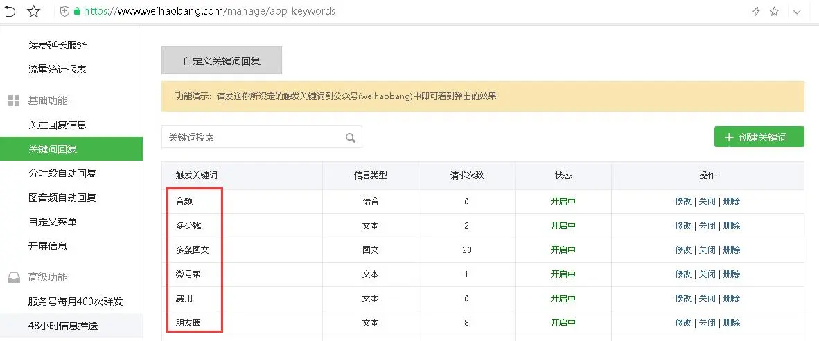 扫码回复消息设置关键词关键词,在关键词回复功能中在关键词新建好,然后填写对应关键词即可实现。