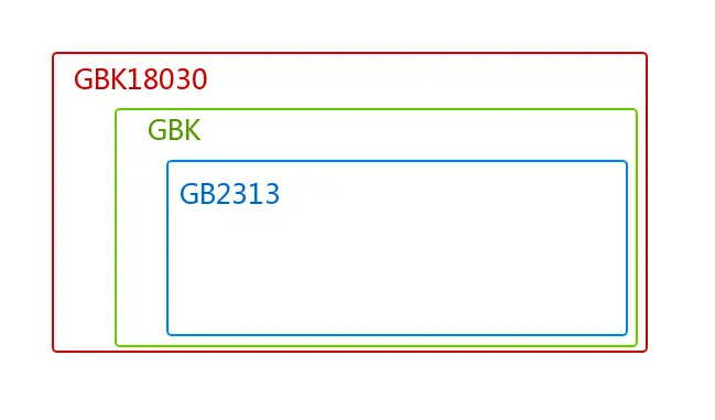 GBK编码是GB2312编码的超集,向下完全兼容GB2312,兼容的含义是不仅字符兼容,而且相同字符的编码也相同。而GB18030编码向下兼容GBK和GB2312,GB18030编码是变长编码。