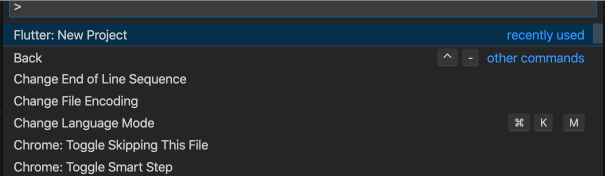 Visual Studio code创建flutter工程 蓝不蓝编程 2019-12-02 1,144 阅读1分钟 1. 在 Visual Studio code里,按组合快捷键:Ctrl+Shift+p 2. 选择:Flutter:New Project 3. 输入工程名称,回车,然后选择存放目录. 4. 运行工程(按F5快捷键或者通过菜单Debug>Start Debugging) 5. 运行效果图