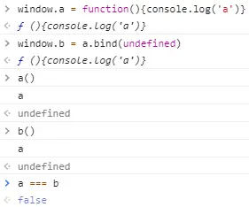 后来与同事交流了一下,发现上面的拓展思考其实是不太正确的,由于bind函数并非返回函数的指针,而是返回一个新的函数,因此其实函数 function f( ) { ... } 和函数f.bind(null) 其实是两个不同的对象。