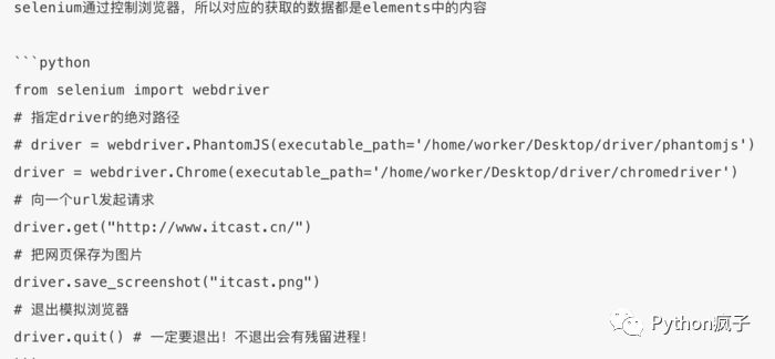 PhantomJS 和 Chromedriver操作方式以及功能一致 主要区别 PhantomJS 无界面模式 节省内存 Chromedriver 完全模仿浏览器 消耗内存
