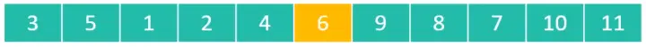 现在选择0位置的元素6作为轴点元素,一旦定义好了轴点元素后,就开始执行步骤2