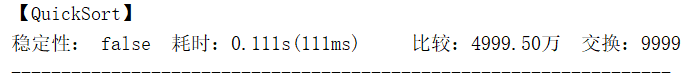 可以看到,快速排序与前面几种排序结果排序后,得到的结果非常优秀。如果再将数据进行增加到50000条数据,得到的结果就更加明显了,结果如下(这里的排序,对前面性能较差的几种排序就不再做对比了)