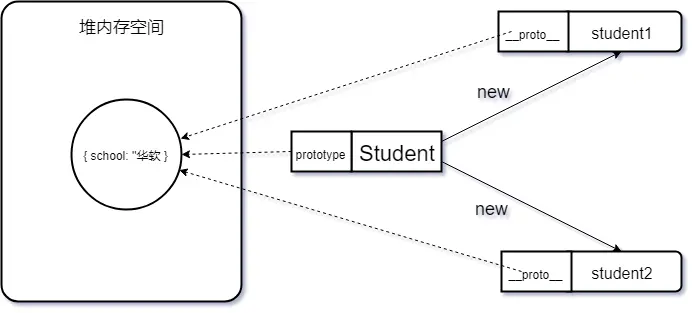 console.log(Student.prototype) // { school: "华软", constructor: ƒ }