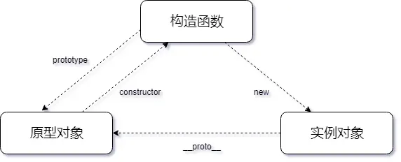 原理就是通过构造函数创建出来的实例中,该实例的内部具有一个 __proto__ 指针来指向构造函数的原型 prototype。