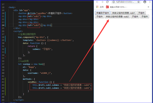 this.$refs.sub2.submes = "来自父组件的信息--sub2";