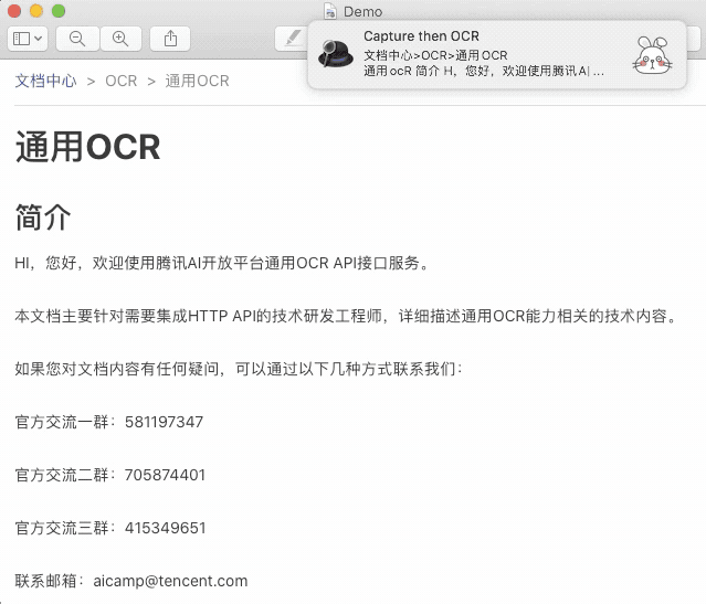 - 通用 OCR: 截图后使用关键词 oot (tencent) 触发。