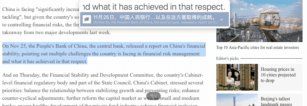 - 文本翻译: 使用关键词 tc (translate caiyun) + 需要翻译的内容来触发;输出结果可通过 command + v 复制。