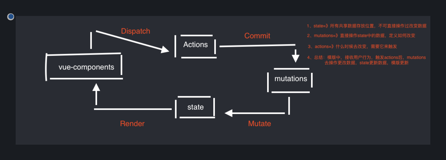 - action触发之后,mutations去操作改变变数据。最后state更新改变后的数据,vue组建的内容更新;