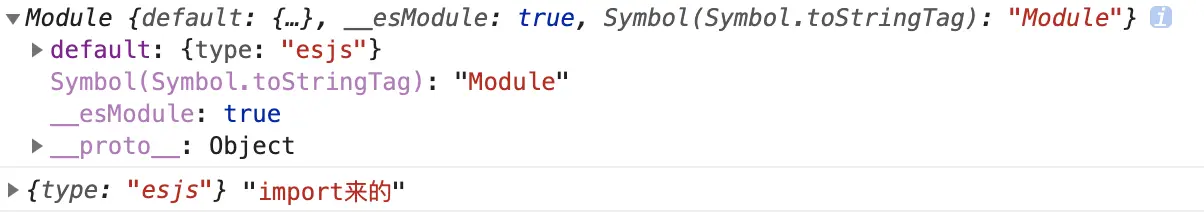 当我们使用ejs规范import的时候,babel会进行default的读取,所以我们可以直接获取到我们想要的值,然后如果你使用require的话,babel会按照commonjs直接进行读取,所以会导致我们需要 .default 才能拿到我们真正想要的值,结果如下