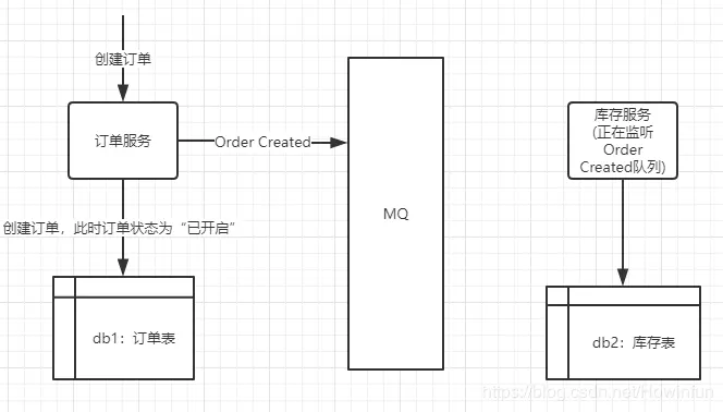 1、订单服务需同步等待库存服务的返回结果,接口结果返回延误。2、订单服务直接依赖于库存服务,只要库存服务崩了,订单服务不能再正常运行。3、订单服务需考虑并发问题,库存最后可能为负。下面开始利用事件驱动实现最终一致性