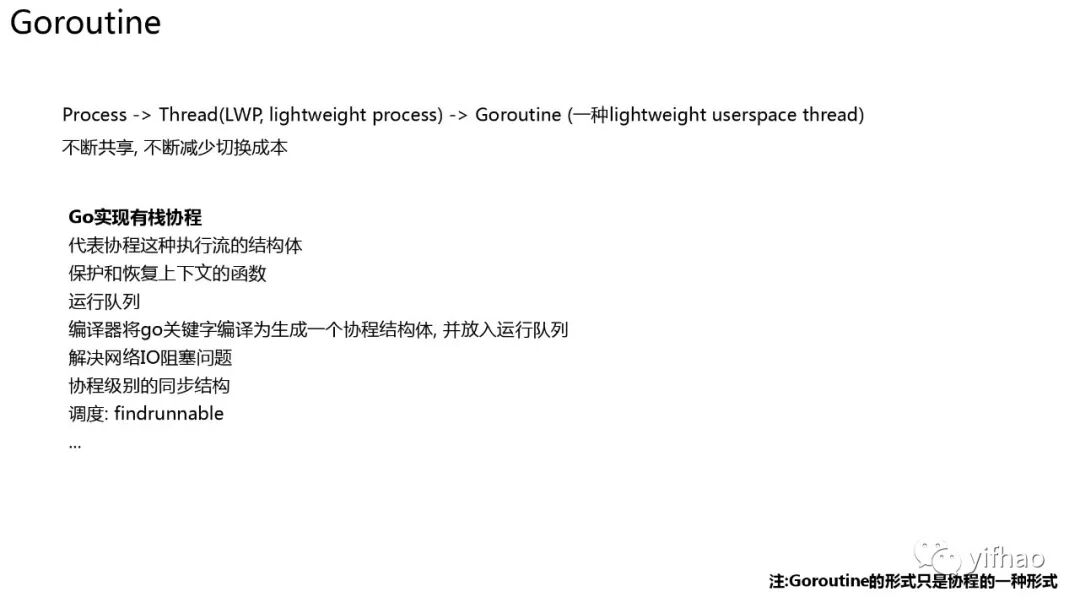 我们去看调度的一个进化, 从进程到线程再到协程, 其实是一个不断共享, 不断减少切换成本的过程. go实现的协程为有栈协程, go协程的用法和线程的用法基本类似. 很多人会疑问, 协程到底是个什么东西? 用户态的调度感觉很陌生, 很抽象, 到底是个什么东西?