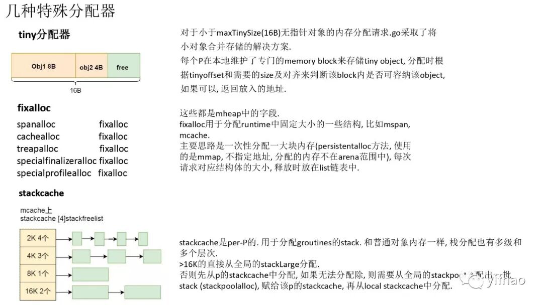 对于栈内存有stackcache分配, 也有多个层次的分配, 同时stack也有多个不同size.