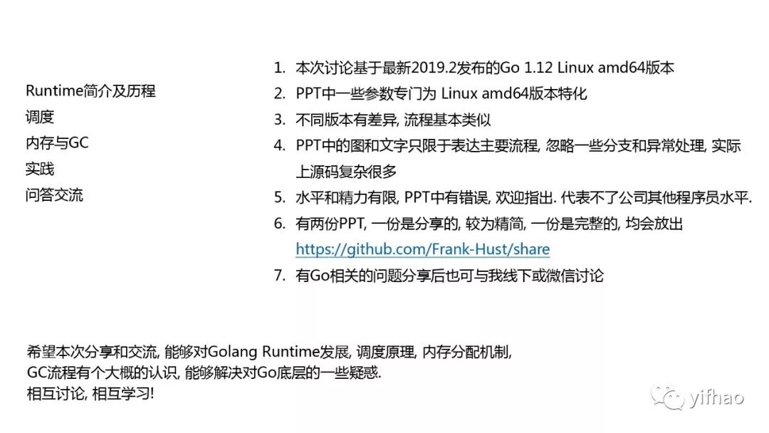 这个是我今年8月份在深圳Gopher Meetup做的一个关于runtime的分享, 10月份在Go夜读(项目地址 https://reading.developerlearning.cn) 里也分享了一次