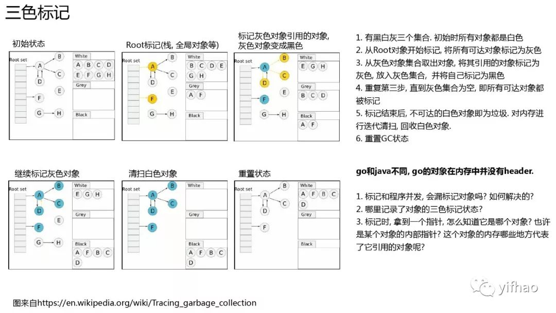 Go GC: Golang GC停顿大致的一个发展历程, 三色标记实现的一些细节, 写屏障, 三色状态, 扫描及元信息, 1.12版本相对1.5版本的改进点, GC Pacer等