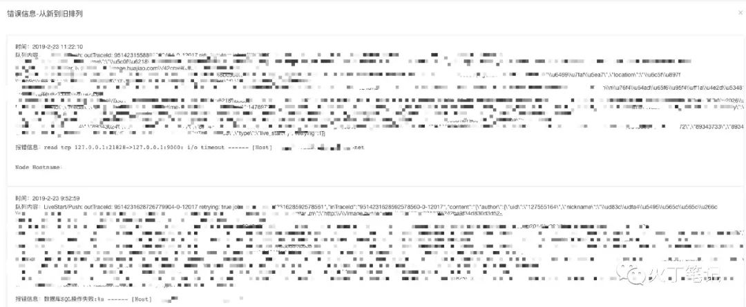 4.显示错误日志查看,可以定位到具体消息id,如果php报错,也会正常展示。