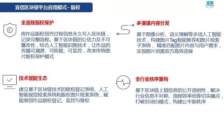 还有一个新的尝试,就是最近我们跟视觉中国进行的一项合作。现在往往出现一些版权纠纷的时候大家说不清楚,因为版权纠纷可以提交到法院只是你当时版权的时间,这种情况往往有时候会被第三方推翻。比如说对方提供了我这个版权可能在某个地方很早就看到了或者在其它渠道就看到过有类似的东西,你想认证这个版权是归属于你的,这个难度就会比较大,尤其对于法院和司法仲裁机构来讲,他们也会面临比较大的决策难度。