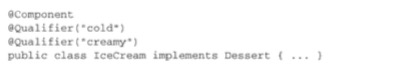 能想到的解决方案就是在注入点和bean定义的地方同时再添加另外一个@Qualifier注解。IceCream类大致就会如下所示
