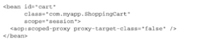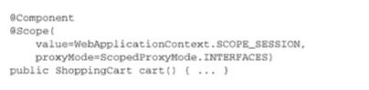 如果ShoppingCart是接口而不是类的话,这是可以的(也是最为理想的代理模式)。但如果ShoppingCart是一个具体的类的话,Spring就没有办法创建基于接口的代理了。此时,它必须使用CGLib来生成基于类的代理。所以,如果bean类型是具体类的话,我们必须要将proxyMode属性设置为ScopedProxyMode.TARGET_CLASS,以此来表明要以生成目标类扩展的方式创建代理。