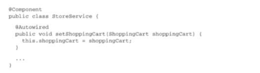 因为StoreService是一个单例的bean,会在Spring应用上下文加载的时候创建。当它创建的时候,Spring会试图将ShoppingCartbean注入到setShoppingCart()方法中。但是ShoppingCartbean是会话作用域的,此时并不存在。直到某个用户进入系统,创建了会话之后,才会出现ShoppingCart实例。