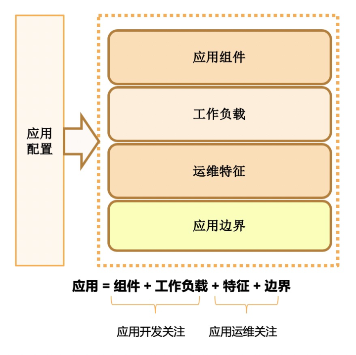 - 应用组件(包含对工作负载的依赖声明);【开发人员关心】