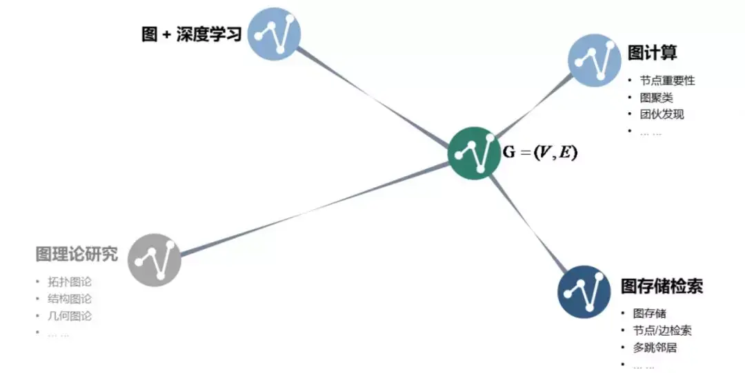 复杂问题先定义并做好分类,有助于我们开展工作。在此处,我们将图的分支分为四个部分:图的理论研究、图存储、图计算和图神经网络。