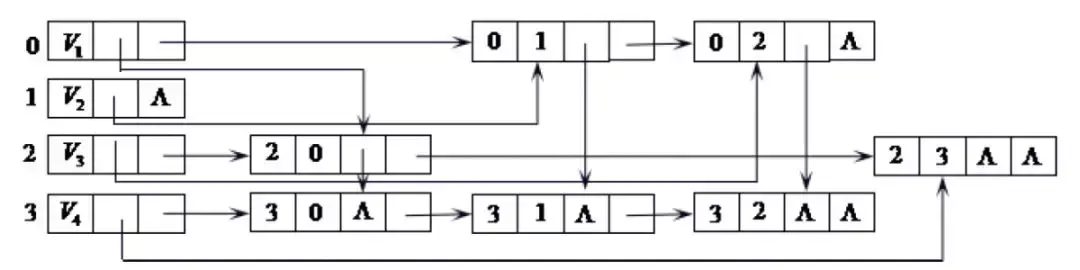 对于这种小数据量的图数据,在实际的应用程序中进行处理的时候,为了便于扩展,通常使用链表来存储。