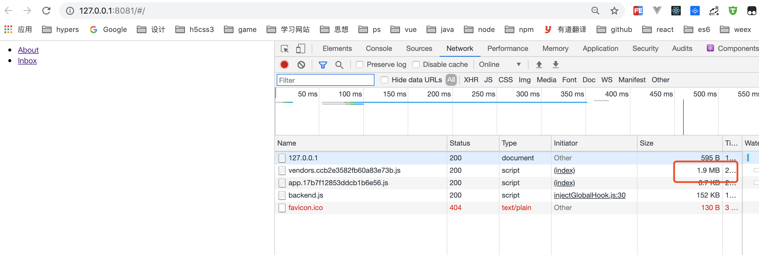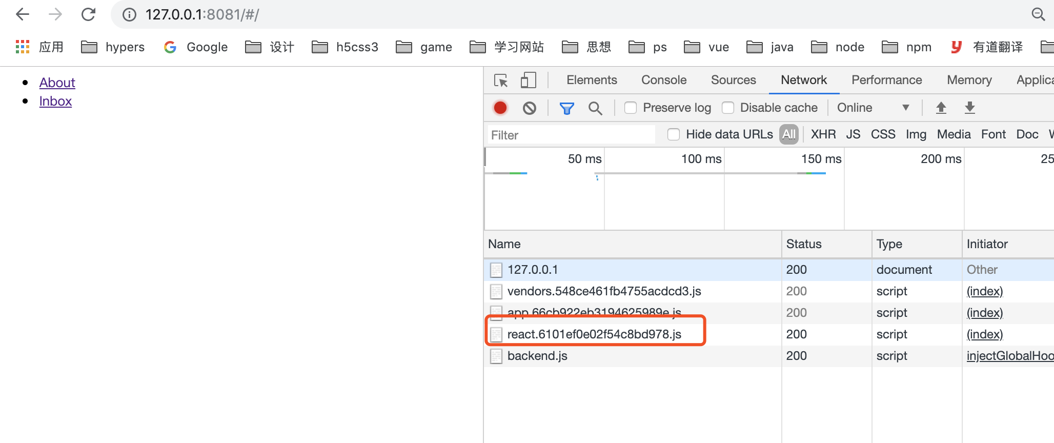 所以 app.js 这个入口文件需要引入 react 这个chunks。