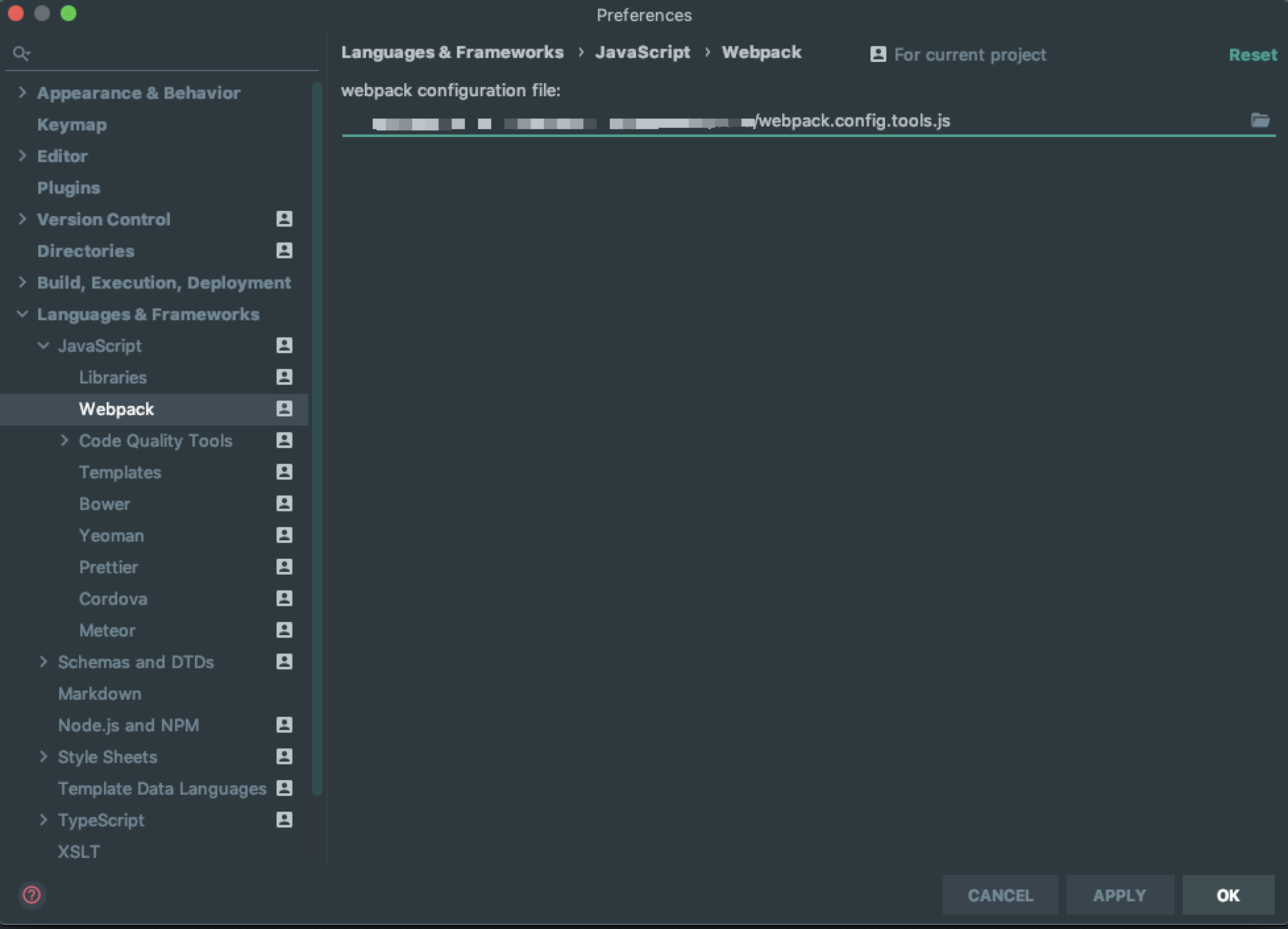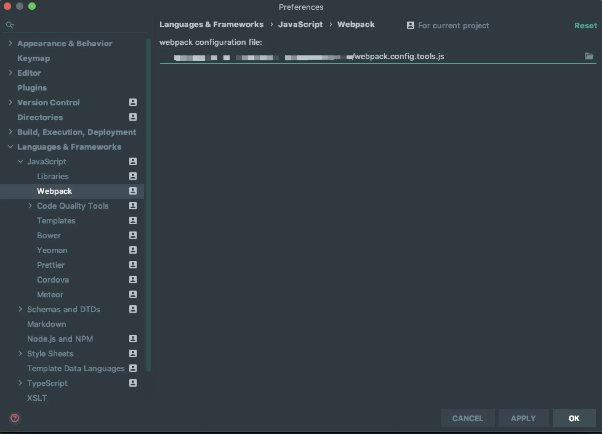 Preferences -> Languages & Frameworks -> Webpack