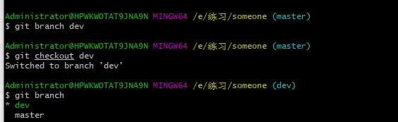git branch dev,并切换git checkout dev - 远程自动创建并使本地分支track相应分支