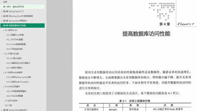 第4章使用Druid数据库连接池和Redis做缓存来尝试提升关系型数据库的访问性能,并扩展了JPA的资源库功能。