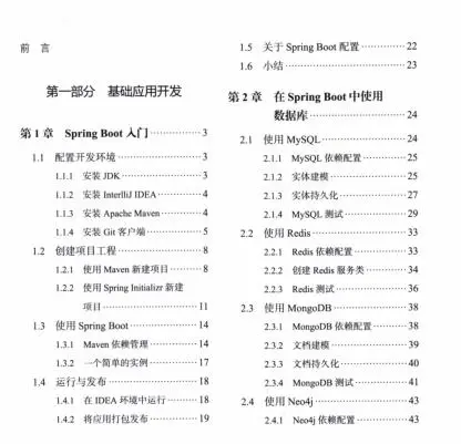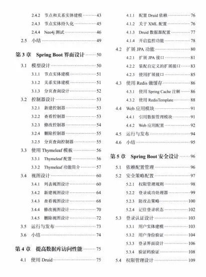 第2章介绍了如何用Spring Boot特有的方式,使用当前流行的数据库: MySQL、Redis、 MongoDB、Neo4j 等。