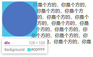 代码中若是有shape-outside: circle(),你以为你是个方的,其实你是个圆的。则如下图显示。
