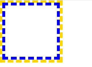 当加入outline: 10px solid gold时如下图所示,由图片可以看出,及时加入outline的div宽高并没有变化,这是outline的特性。