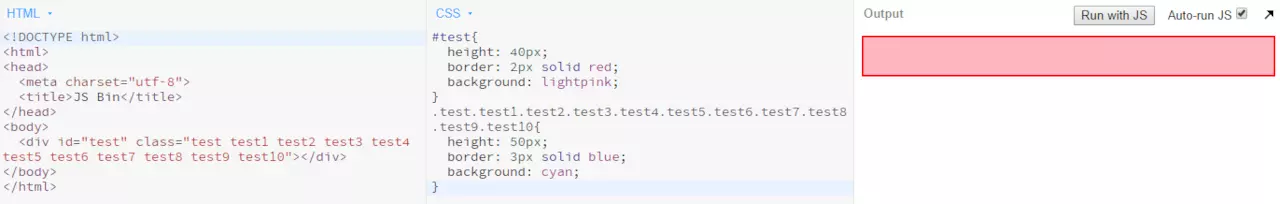 如果权重是十进制的比较方式,则十一个class选择器的权重高于一个ID选择器。但经测试并非如此。