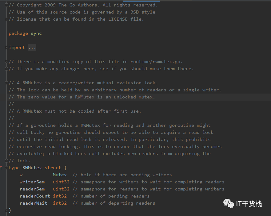 在代码注释中很明确的可以看出,在go语言中的sync包中的RWMutex就是一个读写互斥锁,该锁可以有任意数量的读者或是只有一个写者持有,形象的说就好比一场电影可以有无数的人来看,但是导演就只有一个。