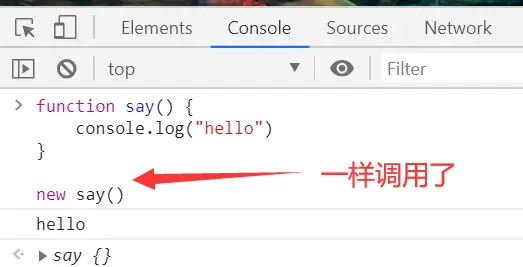 实际上,你也可以对普通的函数使用new去调用,就像这样: