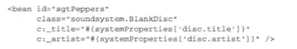 2)一个表达式中引用sgtPeppers的artist属性: 表达式主体的第一部分引用了一个ID为sgtPeppers的bean,分割符之后是对artist属性的引用。