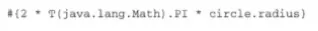 在这里PI的值乘以2,然后再乘以radius属性的值,这个属性来源于ID为circle的bean。实际上,它计算了circle bean中所定义圆的周长。