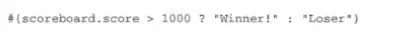 1)例如,如下的表达式会判断如果scoreboard.score>1000的 话,计算结果为String类型的“Winner!”,否则的话,结果为Loser: