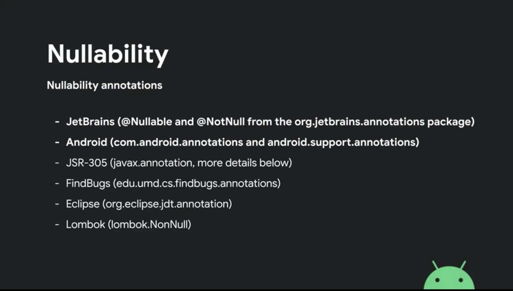 这个Kotlin在调用的时候就明确知道不能为空,这里我们使用的是jetBrain的 @NotNull注解,当然还有其他选择,如下图: